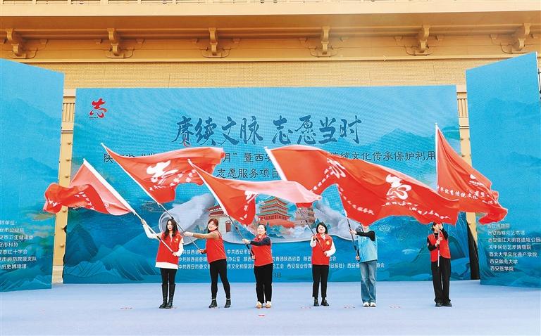 启动仪式上,领导嘉宾为陕西历史博物馆、西安博物院、西安关中民俗艺术博物院、西安市群众艺术馆、大明宫国家遗址公园以及西北大学文化遗产学院共6支“中华优秀传统文化传承保护利用”志愿服务队代表授旗。这些志愿服务队伍将奔赴公益性文化服务现场,以满腔热忱和专业技能“让文物说话,让历史说话,让文化说话”。