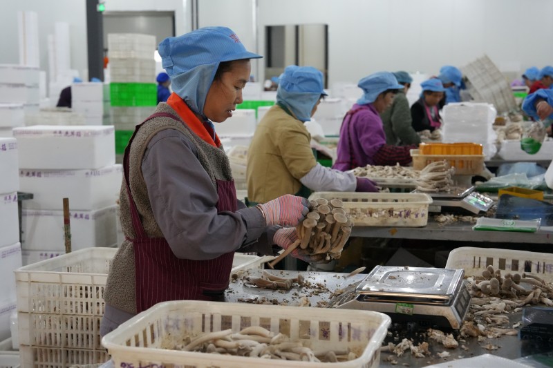 采访团走进蓬溪县食用菌现代农业园区了解文明实践赋能产业发展情况。
