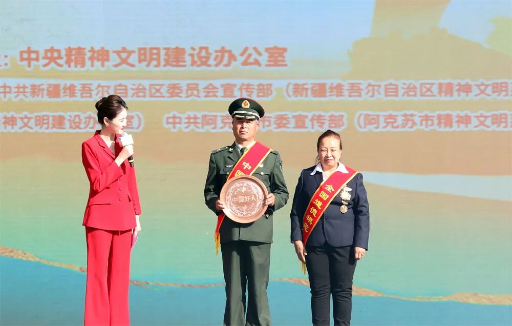十月的新疆,魅力无限。2025年第三次“中国好人榜”发布仪式暨全国道德模范与身边好人现场交流活动10月15日在新疆阿克苏市多浪河水韵广场举办。
