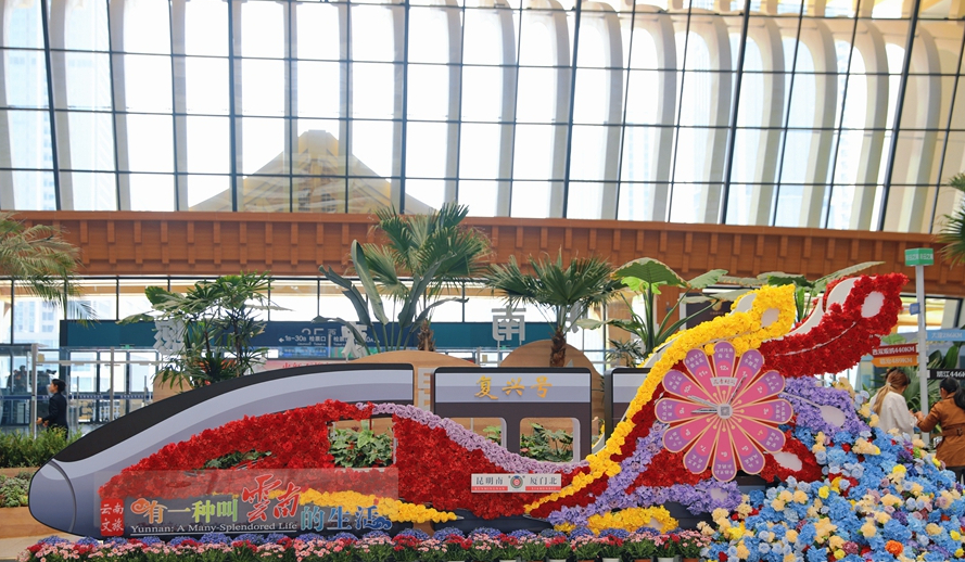 昆明南站以花会客 邀您“香”约云南