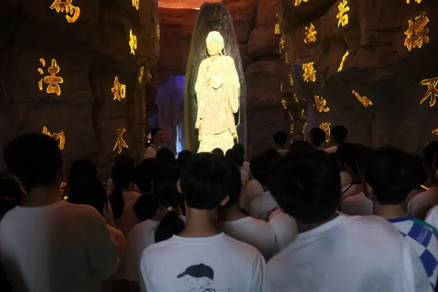 “游客不仅能够近距离观赏精美的石窟艺术,还能亲手‘修复’风化造像、与千年前的造像‘互动’。”安岳石窟数字展示中心负责人介绍,特别是Boxfilm沉浸式影院与3D 8K球幕影院,让唐宋风吹进现实,让匠心穿越时空。开放至今,中心已接待游客超15.8万人次。