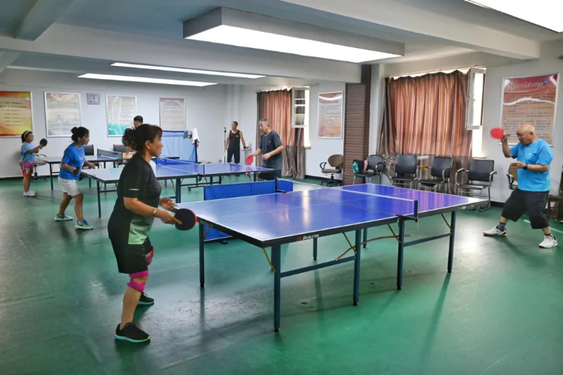 走进长山花园社区党群服务中心,隐约传来丝竹管弦之声,那是退休老人组建的乐团,二胡、琵琶、钢琴、指挥……三十多位老人在社区提供的场地里用音乐丰富着晚年生活。另一边的活动室内,乒乓球桌案旁,一老一小激战正酣。