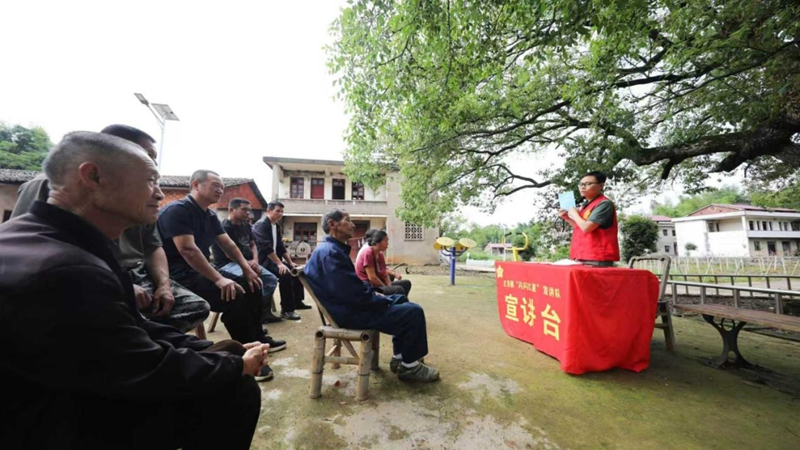 “闪闪的红星”宣讲队,在龙源村宣讲惠农政策。抚州市文明办供图